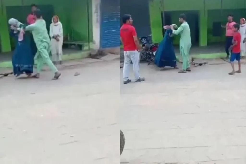 बीच सड़क पर आदमी ने बीवी को चप्पल से पीटा, पुलिस ने लिया एक्शन