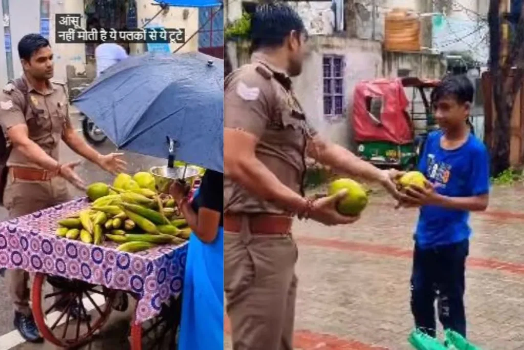 दरअसल, इंटरनेट पर एक पुलिसकर्मी का वीडियो वायरल हो रहा है, जिसमें वह बारिश में भीगती हुई महिला को पहले तो अपना छाता देता है और फिर उसके ठेले से सारा सामान खरीद लेता है। बारिश में भीगते-भीगते फिर ये पुलिसकर्मी जरुरतमंदों को सामान दे रहा है। पुलिसवाले की इस इंसानियत और मेहरबानी को देखकर लोग काफी खुश हो रहे हैं।