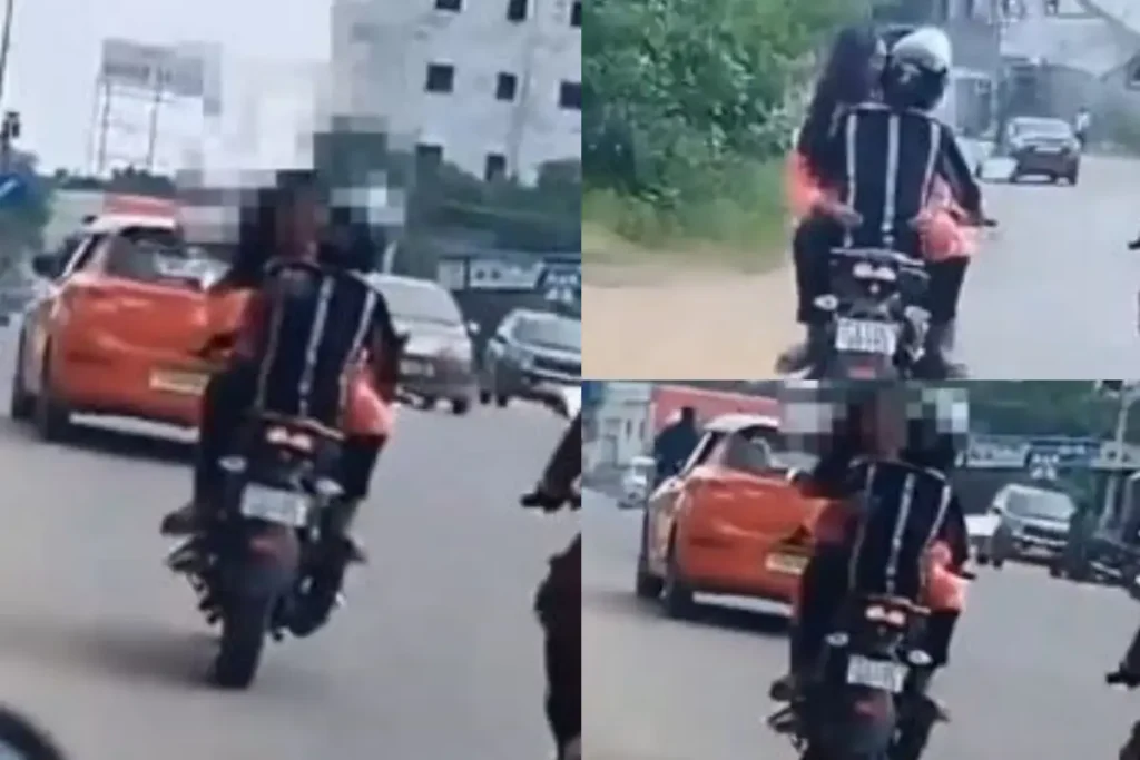 Viral Video: सोशल मीडिया पर एक वीडियो तेजी से वायरल हो रहा है जिसमें एक युवक-युवति को अश्लीलता की सारी हदें पार करते देखा जा सकता है। ये वायरल वीडियो (Viral Video) हैदराबाद के पहाड़ी शरीफ इलाके का है जिसको लेकर सनसनी मची है। सोशल मीडिया पर यूजर्स कपल की खूब आलोचना भी कर रहे हैं। वायरल वीडियो में (Viral Video) देखा जा सकता है कि कैसे तेज रफ्तार बाइक पर सवार एक कपल सड़क के बीचों-बीच किस करते नजर आ रहे हैं।