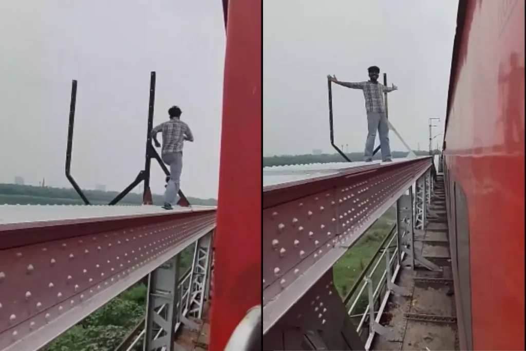 रील के चक्कर में ट्रेन से कूदा लड़का और पुल पर लगा दौड़ने