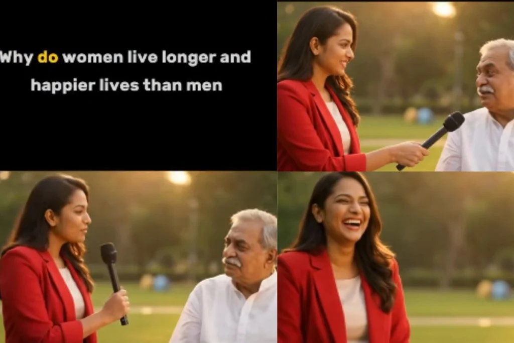 सोशल मीडिया पर एक महिला रिपोर्टर और आदमी का वीडियो वायरल हो रहा है। वो महिलाओं के ज्यादा जीने पर सवाल करते हुए कहती हैं कि, औरतें आदमियों के मुकाबले ज्यादा क्यों जीती हैं? इस पर आदमी बहुत ही मजेदार जवाब देता है।