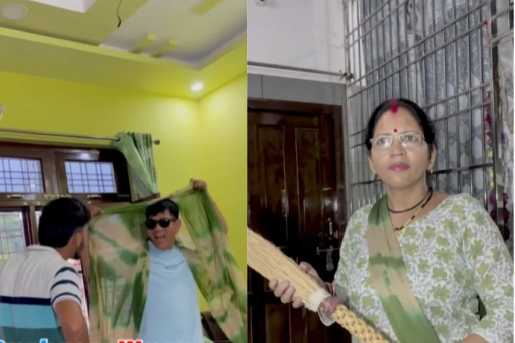 बेटा अपनी मां से कहता है कि, मैं पापा से जाकर कहता हूं कि, मम्मी घर छोड़र भाग गई इसके बाद पापा का रिएक्शन देखते हैं. बेटे के साथ मां भी मिल जाती है. बेटा जैसे ही अपनी मां के भागने की खबर बाप देता है वैसे ही उसका पिता खुशी से नाच उठता और और कूद-कूदकर डांस करने लग जाता है. ये देखकर मां और बेटा दोनों दंग रह जाते हैं. इसके बाद महिला अपने पति को पीटने के लिए झाड़ू लेकर आ जाती है . ये देखते ही आदमी सन्न रह जाता है.