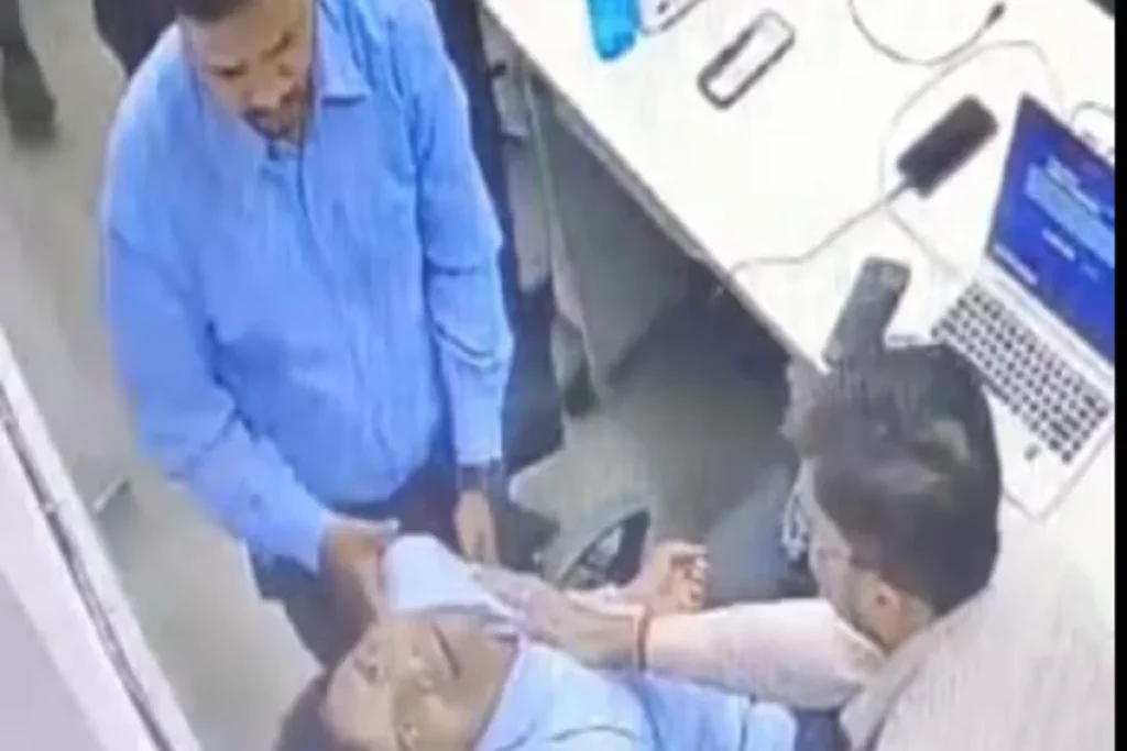 दरअसल सचिन गुप्ता नाम के यूजर ने अपने एक्स हैंडल से यह वीडियो पोस्ट किया है। मामला महोबा के कबरई कस्बे स्थित HDFC बैंक के मेन ब्रांच का है। यहां राजेश कुमार शिंदे (38) रीजनल मैनेजर के पद पर कार्यरत थे। लैपटॉप पर काम करते-करते वह बेहोश हो गए। कुर्सी पर ही लुढ़क गए। बगल में बैठे सहकर्मी जब तक कुछ समझ पाता इससे पहले ही व्यक्ति अचेत हो गया।