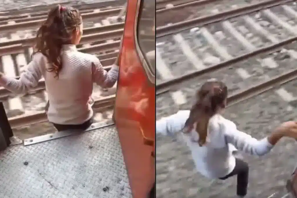 चलती ट्रेन से उतरती लड़की का Viral Video