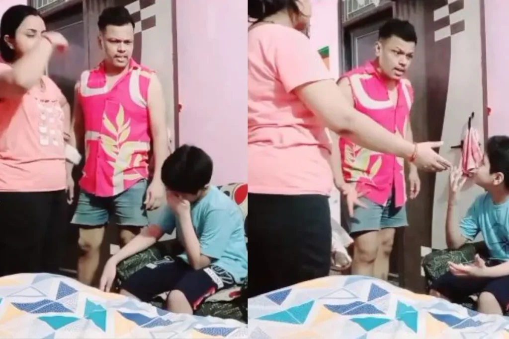 इस दौरान इसकी मां सिर पकड़े हुए नजर आ रही है। बच्चा अपने माता-पिता कि बातें सुनते ही उन्हें “बूढ़िया और बूढ़ा कहने लग जाता है। बच्चा चिल्लाते हुए बोल रहा है कि, ये हमारा बचपन का प्यार है… दर्द होता है ना दिल में..पिता बोलता है कि, दिल में दर्द होने लगा अभी से ही.. इस पर मां काफी निराश हो जाती है और बोलती है कि ये लौंडा तो गया हाथा से।”