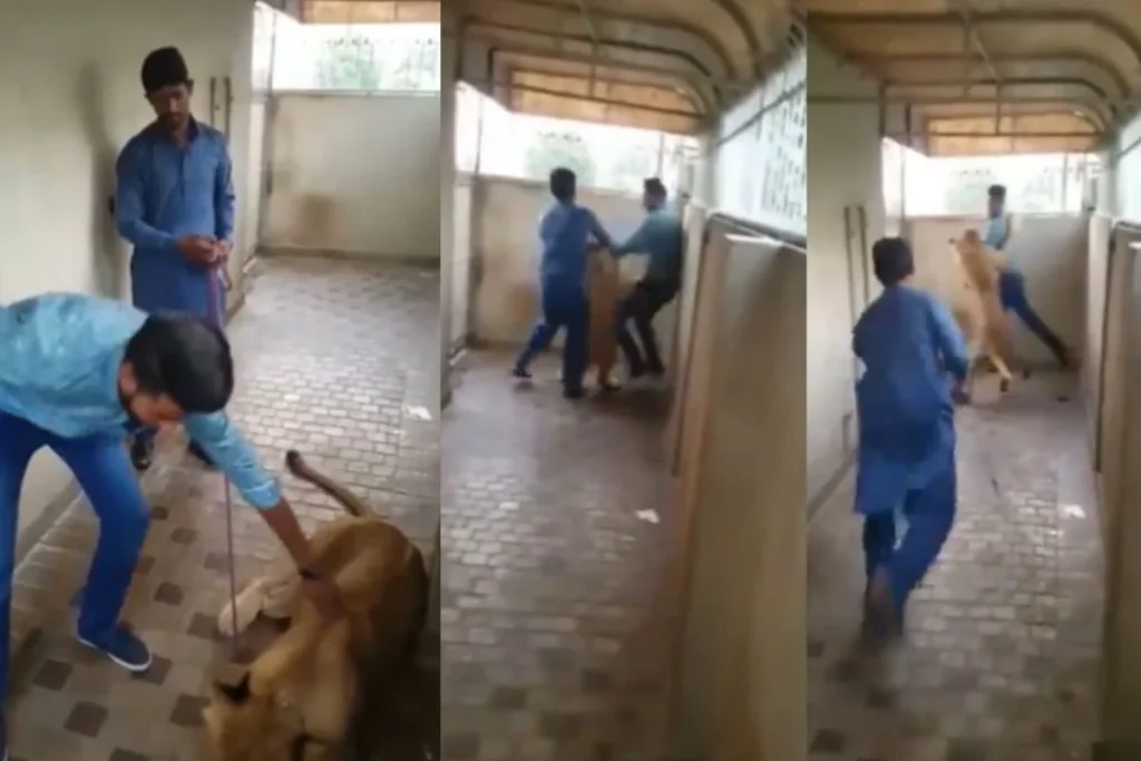 Viral Video: जानवरों से पंगा लेने के बाद मुसीबत को हम अपने गले खुद ही लगाते हैं और वह भी अगर जंगल का राजा शेर हो तो उसे दुश्मनी मोल लेना तो अपने पैर पर कुल्हाड़ी मारने की तरह है। ऐसा ही एक वीडियो सोशल मीडिया पर वायरल हो रहा है जिसमें आप देख सकते हैं कि एक युवक शेर के साथ नजदीकी बढ़ाने के चक्कर में कुछ ऐसा कर गया जिसे देखने के बाद आप भी यही कहेंगे कि यह देखो अपने पैर पर खुद ही कुल्हाड़ी मार ली। कभी-कभी मजाक हमारे साथ ही भारी पड़ जाता है और ऐसा ही हुआ इस युवक के साथ।