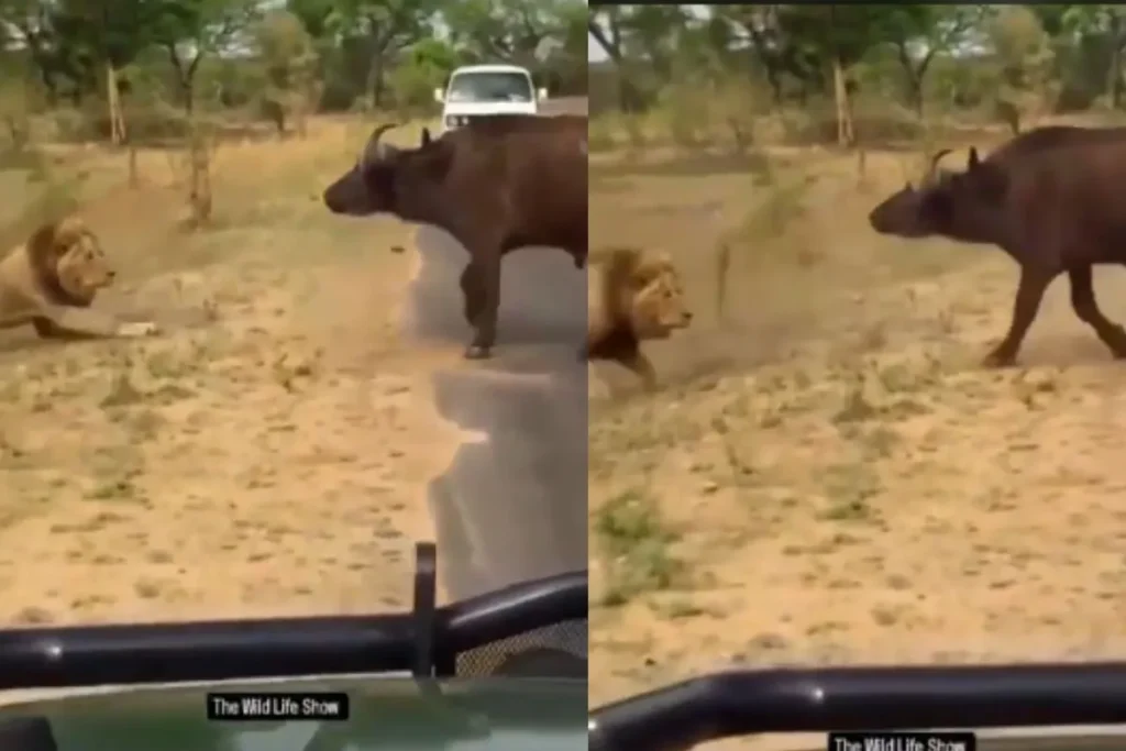 क्या हुआ जब शेर से सीधे टकरा गया भैंसा?