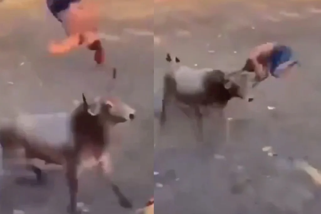 सांड से पंगा लेने युवक को पड़ा भारी