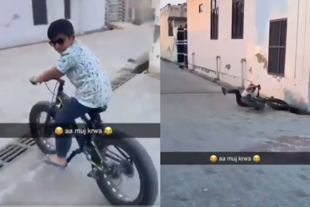 इस दौरान वह साइकिल चलाते-चलाते धड़ाम से जमीन पर गिर जाता है. वह जमीन पर चित होकर जैसे ही गिरता है वैसे ही वहां पर मौजूद उसकी हंसी बनाते हुए कोई वीडियो रिकॉर्ड करने लग जाता है. बच्चा ये करता देख काफी गुस्से से देखने लगता है. इस बच्चे का रिएक्शन काफी वायरल हो रहा है . इसे देखने के बाद उसकी हंसी बनाते हुए यूजर्स बोल रहे हैं कि, ‘हो गई मौज’. मजे-मजे में लड़के की सारी हीरोपंती निकल जाती है. इसे देखने के बाद यूजर्स की को काफी हंसी आ रही है.