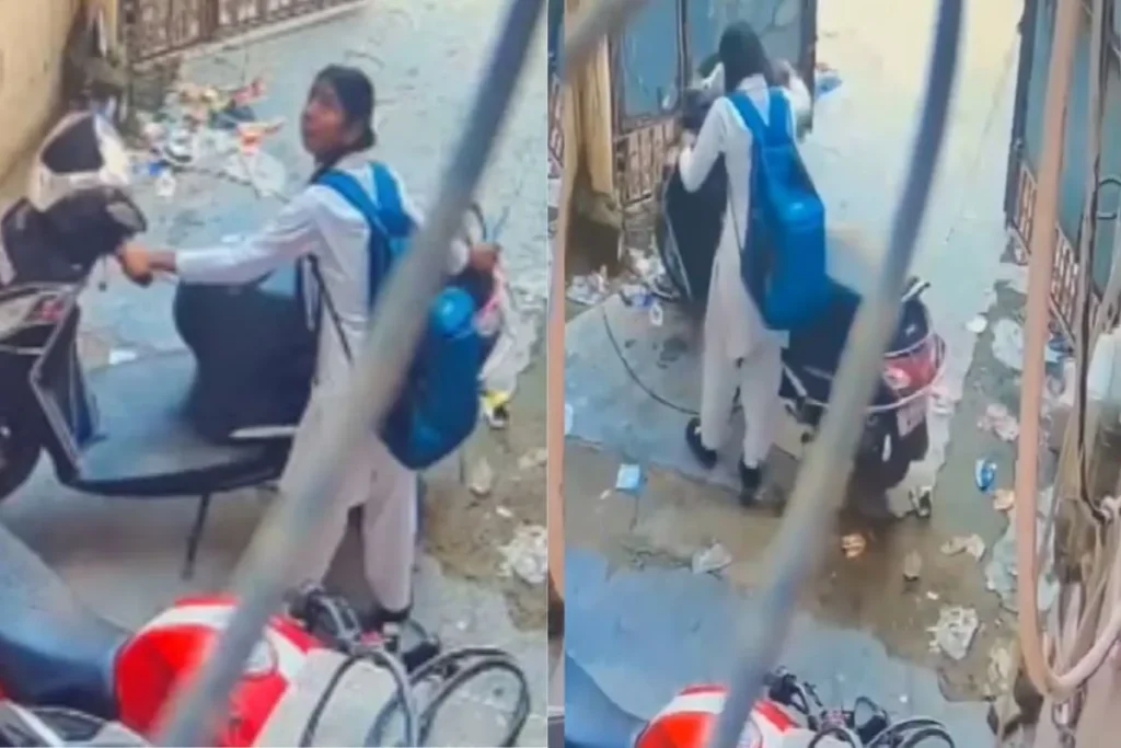 स्कूटी चोरी करती हुई लड़की कैमरे में हुई कैद