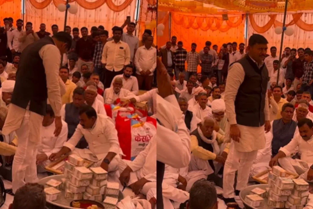 वायरल वीडियो में आप देख सकते हैं कि भात की रस्म चल रही है और लोगों की भीड़ जमा है। इस फंक्शन को लोग खूब इंजॉय कर रहे हैं। वहीं मामा नोट की गड्डी भात की रस्म में पड़ोस रहा है और ऐसे में उसने एक करोड़ 11 लाख 151 रुपए देकर लोगों को हैरान कर दिया। इस वीडियो में आप देख सकते हैं कि जब यह घोषणा हुई की मामा ने इतने रुपए दिए तो हर तरफ तालियां गूंजने लगी। लोगों के चेहरे पर अलग ही मुस्कुराहट नजर आई।