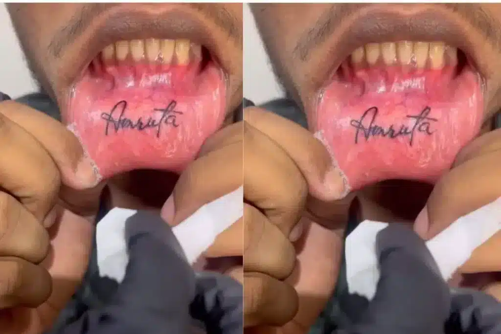 वैसे तो आपने अकसर प्रेमी और प्रेमिकाओं को अपने शरीर के अंगों पर एक दूसरे का नाम लिखवाते हुए देखा होगा। लेकिन क्या कभी किसी को होंठ पर नाम लिखवाते देखा है। हम दावे से कह सकते हैं। ऐसा नहीं देखा होगा। लेकिन एक प्यार में पड़े प्रेमी ने ये दर्द से भरा कारनामा कर दिया है। उसे अपनी प्रेमिका पर इतना ज्यादा प्यार आया कि उसने अपने गर्लफ्रेंड के नाम का टैटू अपनी नीचे वाले होंठ में लिखवा लिया। जिसके बाद ये Viral Video मीडिया से लेकर सोशल मीडिया पर छा गया।