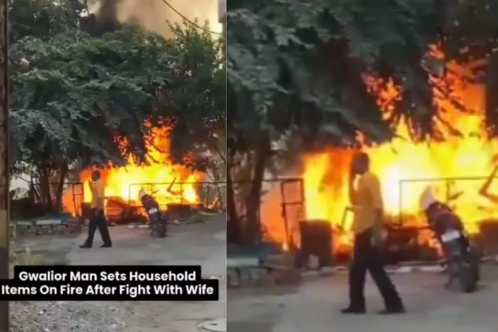 Viral Video: पति और पत्नी के बीच लड़ाई (Husband Wife Fight) होना एक बेहद आम सी बात है। लेकिन कभी-कभी ये लड़ाई इतनी ज्यादा बढ़ जाती है कि, अपराध के साथ हैरतअंगेज घटनाओं को जन्म दे देती है। आज का वायरल वीडियो (Viral Video) भी कुछ ऐसा ही है। इसमें एक पति ने अपने घर के सामान को सिर्फ इसलिए आग के हवाले कर दिया क्योंकि उसकी बीवी से लड़ाई हुई थी। घर के सामान में आग लगाने के बाद आदमी घर के बाहर टहलते हुए बीड़ी या फिर सिगरेट जैसा कुछ पीते हुए दिख रहा है। आस-पास पड़ोसी भी मौजूद हैं और सिर्फ नजारे को दूर से देख रहे हैं।