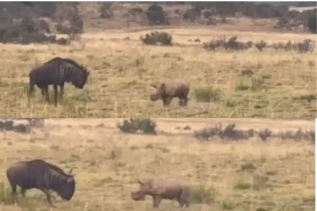 जंगली भैंसे और गैंडे के बच्चे का खेलते हुए Viral Video