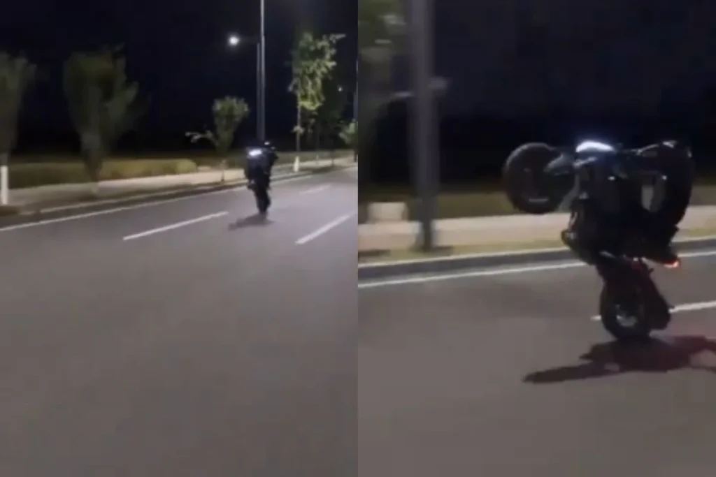 वीडियो में आप देख सकते हैं कि एक शख्स बीच सड़क बाइक पर सवार होकर फिल्मी स्टंट कर लोगों को हैरान कर रहा है। बाइक पर चढ़कर ऐसा लग रहा है जैसे वह हवा में उड़ रहा हो और ट्रैफिक नियमों को ताक पर रखकर यह शख्स दिखावे के चक्कर में अपना जान खतरे में डाल देता है। फर्राटेदार बाइक दौड़ा रहे इस लड़के को यह नहीं पता है कि स्टंट के दौरान गंभीर घटनाएं भी हो सकती है लेकिन वीडियो का अंत देखकर आप चौंक जाएंगे।