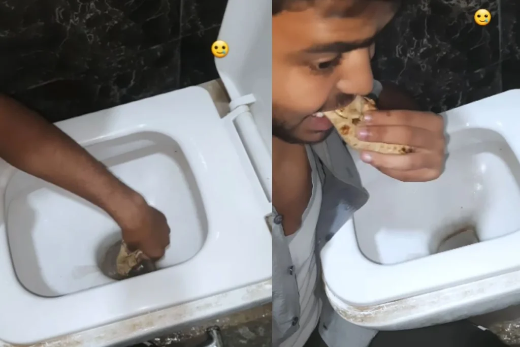 टॉयलेट की सीट के पानी से आदमी ने खाई रोटी