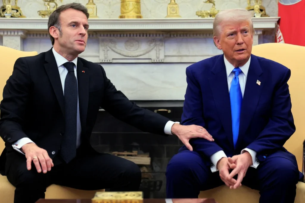 यूरोप द्वारा यूक्रेन को दिए जाने वाली आर्थिक मदद पर अमेरिका राष्ट्रपति Donald Trump प्रेस का जवाब दे रहे थे, तभी फ्रांस के राष्ट्रपति इमैनुएल मैक्रों ने डोनाल्ड ट्रम्प का हाथ पकड़कर उन्हें रोका और फिर प्रेस के सवाल का जवाब दिया। संयुक्त प्रेस ब्रीफिंग के दौरान ट्रम्प ने प्रेस के सवाल पर कहा यूरोप यूक्रेन को बस “उधार” दे रहा है और वह आखिर में अपने पैसे वापस ले लेगा।