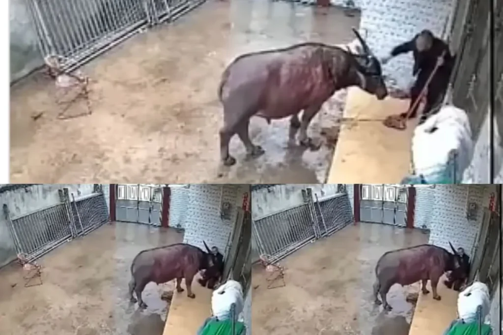 भैंसे (Buffalo) ने किया आदमी पर हमला