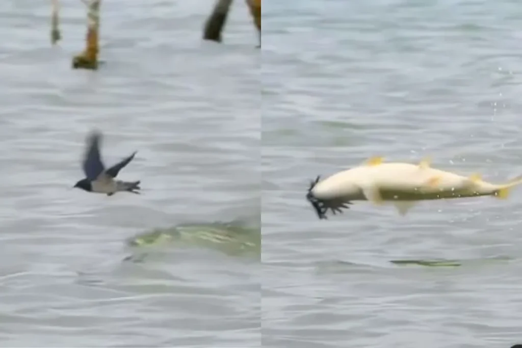 चिड़िया का मछली ने किया हैरतअंगेज तरीके से शिकार