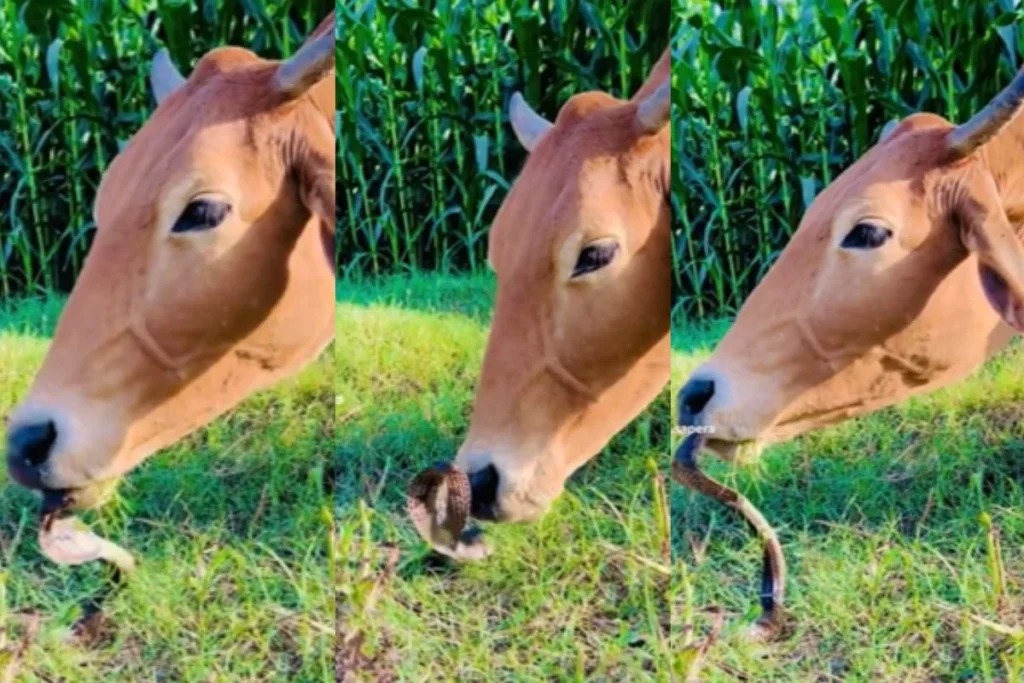 Animal Viral Video: कहते है जानवर (Animal) भले ही बेजुबान हो पर प्यार की भाषा इन्हे खूब समझ आती है। जानवरों से जुड़े अलग अलग तरह के कई वीडियो आए दिन सोशल मीडिया पर वायरल होते रहते है जो लोगों को काफी पसंद आते है। आज हम आपके लिए एक ऐसा वीडियो (Video) लाए है जिसे देखकर आप भावुक भी हो जायेगे और आपको झटका भी लग सकता है। जी हाल ही में एक वीडियो सोशल मीडिया पर जमकर वायरल (Viral Video) हो रहा है जिसमे एक गाय और कोबरा सांप (Cow Cobra Video) आमने सामने है। अब सांप और वो भी कोबरा जैसा खतरनाक और सामने गाय जिसे अमूमन शांत जीव माना ऐसे में अंदाजा लगाना मुश्किल है कि क्या हो सकता है। भले ही आप को चाहे अंदाजा लगाएं लेकिन इस Animal Viral Video में ऐसा कुछ हुआ कि देखने वाले हैरान रह गए।