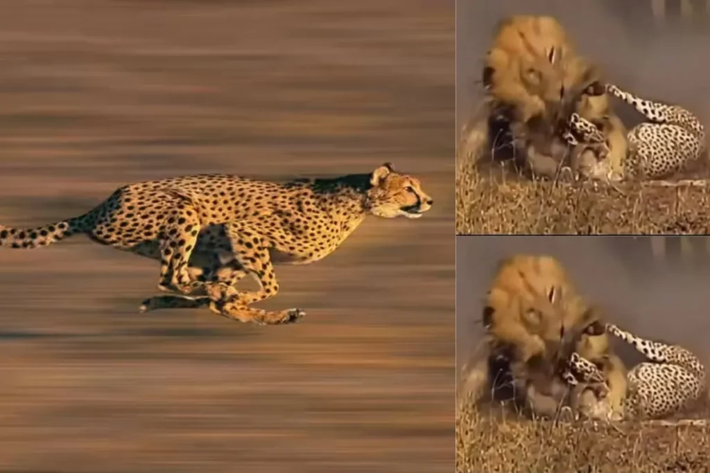 शेर ने एक झटके में चीते को पकड़ा