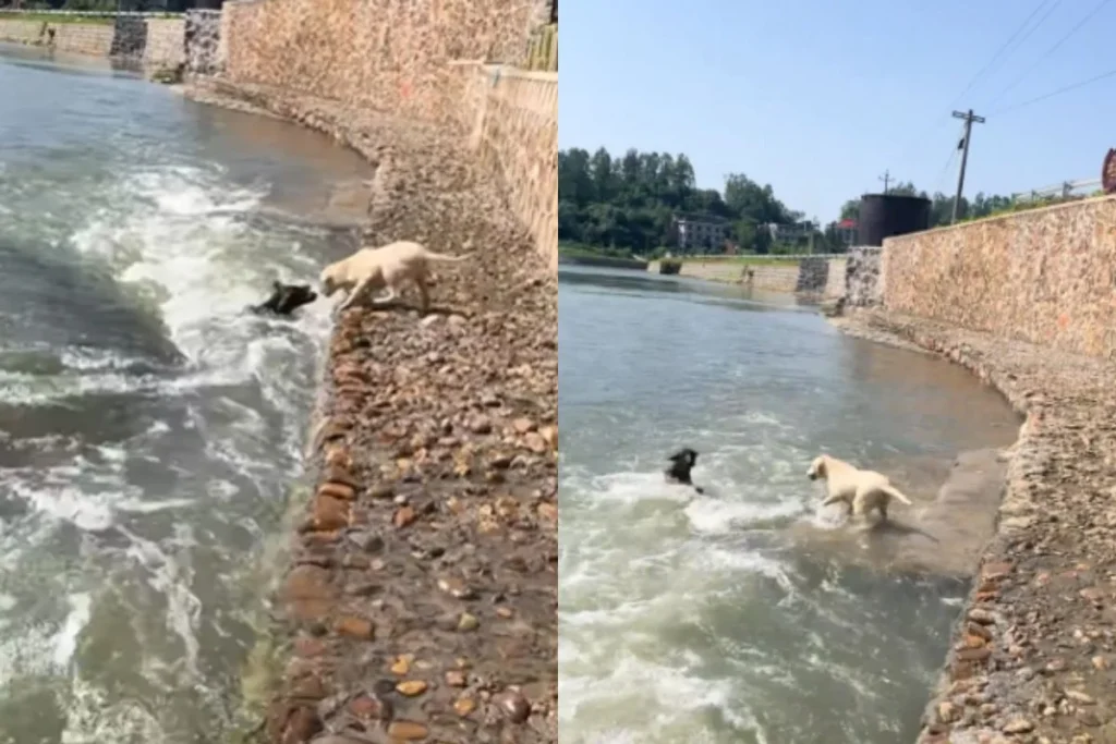 Animal Viral Video में दोस्त को बचाने के लिए पानी में कूदा कुत्ता