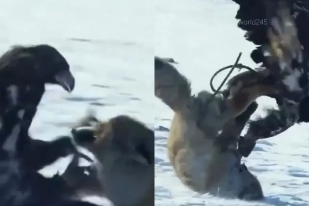 लोमड़ी को पकड़ने के लिए बाज ने लगाई बाजी