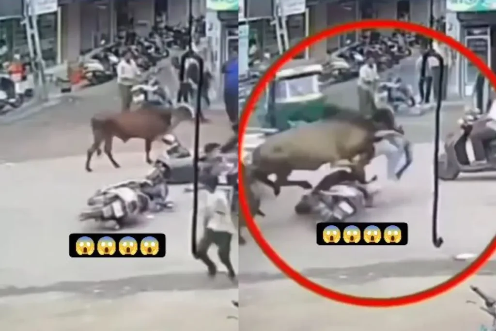 इस वीडियो को सोशल मीडिया प्लेटफॉर्म इंस्टाग्राम पर अपलोड किया गया है। इस वीडियो में देखा जा सकता है कि, तीन सांड सड़क की तरफ लड़ते हुए आ रहे हैं। तभी वह सड़क पर निकल रहे स्कूटी सवार पर हमला कर देते हैं। इस वीडियो में दो सांडों के हमले से लड़का बुरी तरह से घायल हो जाता है और सड़क पर ही दर्द से चिल्लाने लग जाता है। लड़के की हालत को देख लग रहा है कि, उसे काफी चोट लगी हुई है। इस घटना के पूरे वीडियो को वहां पर लगे CCTV कैमरे ने कैद कर लिया। अब ये Animal Viral Video काफी तेजी से फैल रहा है। ये वीडियो कहां है इसकी जानकारी उपलब्ध नहीं है।
