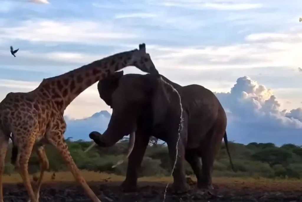 Animal Viral Video में हुई जिराफ और हाथी की जोरदार भिड़ंत