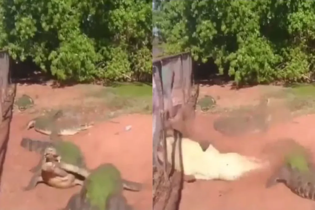 इस वीडियो को Wildlife Uncensored नाम के एक्स अकाउंट से शेयर किया गया है। इस वीडियो में देखा जा सकता है कि, कई सारे मगरमच्छ अपने बाड़े में मौजूद हैं। इस दौरान एक महिला इन मगरमच्छों की तरफ मांस का टुकड़ा फेंकती है वैसे ही कुछ मगरमच्छ इसकी तरफ बढ़ जाते हैं। तभी एक मगरमच्छ दूसरे मगरमच्छ की टांग को पकड़कर पहले तो मोड़ता है और फिर उसे काटकर खा जाता है। इस दौरान मगरमच्छ दर्द से कराहा उठाता है। ये नजारा काफी हैरान करने वाला है।