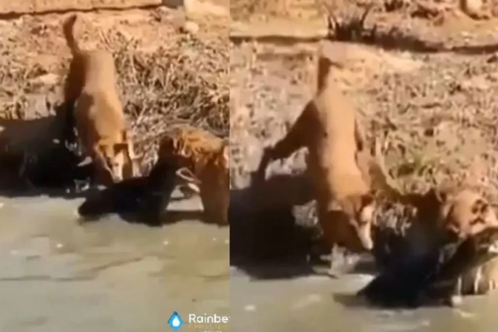 इस हैरतअंगेज Animal Viral Video को एक्स पर अपलोड किया गया है। वीडियो की शुरुआत में पानी के अंदर एक कुत्ता दिखता है जो कि, मगरमच्छ के बच्चे को खींचता हुआ किनारे की तरफ दौड़ रहा होता है। कुत्ते के इस शिकार को देख किनारे पर मौजूद दूसरा कुत्ता भी काफी खुश हो जाता है और उसकी मदद के लिए पानी में उतर जाता है। इस दौरान खूंखार मगरमच्छ खुद को बचाने की काफी कोशिश कर रहा है लेकिन, मजबूत इरादों वाले इन दोनों बहादुर कुत्तों के आगे वह बेबस हो गया है। वीडियो में देखा जा सकता है कि, ये किस तरह से मगरमच्छ को अपने दांतों से जकड़े हुए और काट रहे हैं। ये नजारा अपने आप में काफी डरावना और हैरतअंगेज है।