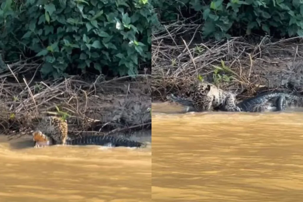 जगुआर और मगरमच्छ की खरतनाक लड़ाई