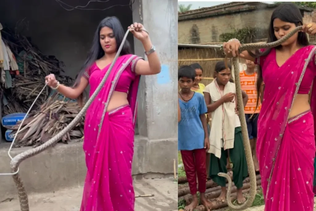 जब घर में सांप निकल आता है तो लोग रेस्क्यू टीम को बुला लेते हैं और यह टीम इस सांप को पकड़ कर ले जाती है और जंगल में इसे छोड़ देती है. एक ऐसा ही वीडियो वायरल हो रहा है यह Animal Viral Video इसलिए बेहद खास है क्योंकि, इस वीडियो में एक बेहद खूबसूरत लड़की सजधज के सांप का रेस्क्यू कर रही है. लड़की ने गुलाबी कलर की साड़ी पहनी हुई है और वह बेहद खूबसूरत है. लड़की के बाल खुले हुए हैं और वह सांप को घर से निकाल रही है. इस सांप की लंबाई बहुत ज्यादा है लड़की बिना डरे उसे पकड़ रही है .