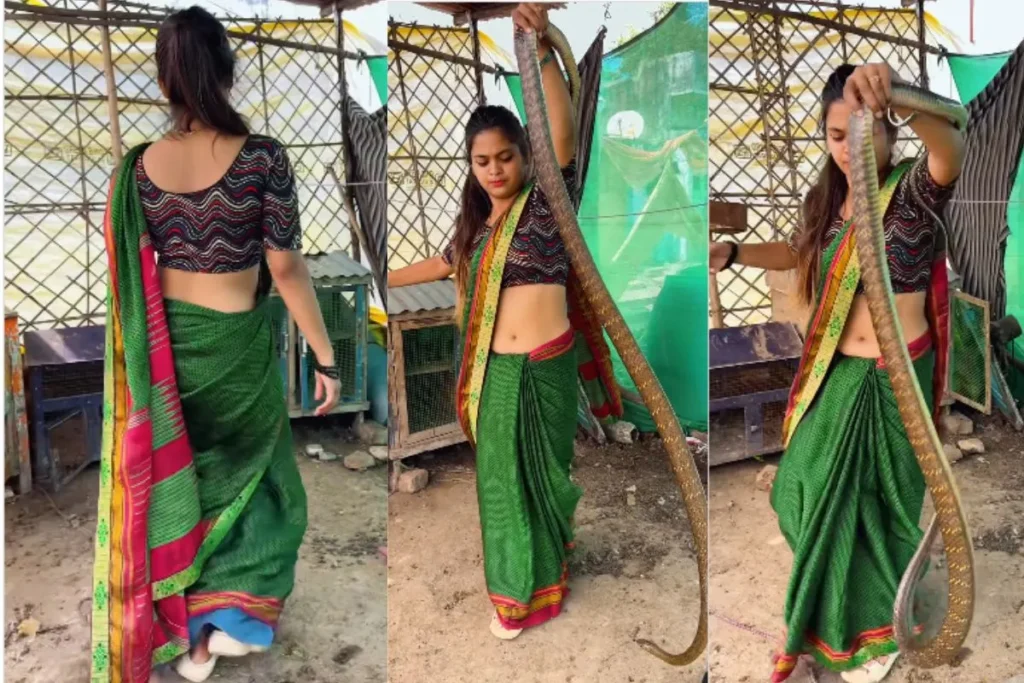 वीडियो में देखा जा सकता है कि, लड़की सांप को किसी मुर्गी के रहने वाले स्थान से निकाल रही है। लड़की ने हरे रंग की साड़ी पहनी हुई है और बहुत ही हिम्मत दिखाते हुए इस सांप को हाथों से खींचती है और फिर बस्ती से दूर उसे जंगल में छोड़ देती है। लड़की की इस हिम्मत को देख वहां पर मौजूद लोग काफी डर भी रहे हैं।