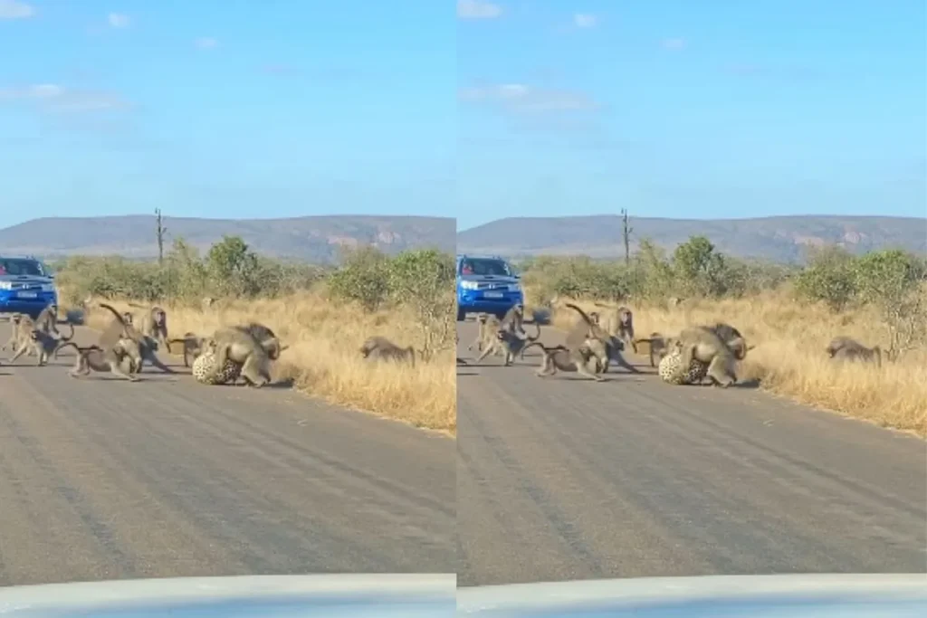 इस वीडियो को Latest Sightings नाम के यूट्यूब चैनल से अपलोड किया गया है. वीडियो में साफ तौर पर देखा जा सकता है कि, बीच सड़क पर जंगल के किनारे अचानक से बंदरों के झुंड पर एक तेंदुआ हमला करके उन्हें शिकार बनाने की कोशिश करता है, तभी वहां पर मौजूद सभी बंदर उस तेंदुए पर हमला बोल देते हैं और उसकी बुरी तरीके से पिटाई कर देते हैं. वह ग्रुप में मिलकर इतनी बुरी तरह से मारते हैं कि तेंदुए को अपनी जान बचाने के लाले पड़ जाते हैं और यह वीडियो वायरल हो जाता है. इस वीडियो को 14 लाख लोगों ने लाइक किया है. इसे देखने के बाद लोग इन बंदरों के काफी तारीफ कर रहे हैं और बोल रहे हैं कि, हम सबको मिलकर रहना चाहिए क्योंकि एकता में शक्ति होती है.