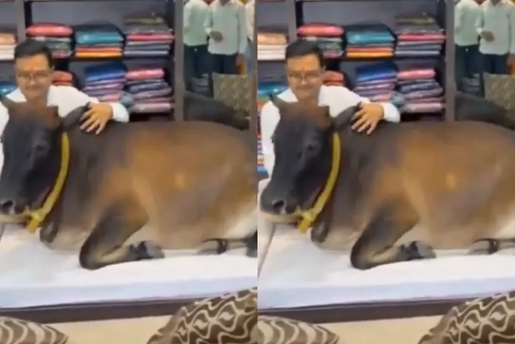 यह Animal Viral Video छत्तीसगढ़ के रायपुर का है. दुकान मालिक कपड़े की दुकान चलाता है. वीडियो में सुना जा सकता है कि, मीडिया को बुलाकर दुकान मालिक बता रहा है गाय किस तरीके से हर रोज दोपहर 3:00 से लेकर 7:00 बजे के बीच दुकान पर आती है और वहां बैठ जाती है. आदमी यह भी बता रहा है कि, उस पर गाय माता की कितनी असीम कृपा है. दुकानदार ये भी बता रहा है कि, घर में भी ये गाय उसी के साथ खाना खाती है. गाय और आदमी के बीच इस पवित्र रिश्ते को देखकर हर कोई हैरान है.