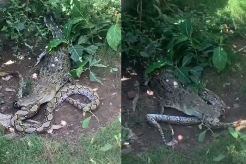 आपको बता दें कि इस वीडियो को सोशल मीडिया प्लेटफॉर्म इंस्टाग्राम पर शेयर किया गया है, जोकि तेजी से वायरल हो रहा है. इसमें एक पायथन घर के आंगन में आराम कर रहा होता है कि तभी वहां मगरमच्छ उस पर हमला बोल देता है. जब तक पायथन को कुछ समझ आता है उसका शरीर मगरमच्छ के जबड़े में फंस जाता है. हालांकि अपना बचाव करने के लिए पायथन मूंह से हमला करने की कोशिश करता है मगर उसकी सारी कोशिशे बेकार जाती हैं.