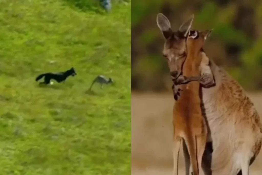इस वीडियो की शुरुआत में कंगारू का बच्चा अपनी मां के साथ भागता है लेकिन, आगे चलकर वह अपनी मांकी गोद से गिर जाता है। और अपनी मां से काफी पीछे रह जाता है। जिसके बाद एक खूंखार कुत्ता बेचारे बेबी कंगारू के पीछे अपने खूनी इरादों को अंजाम देने और उसे दबोचने के लिए कंगारू के पीछे भागने लगता है। कुत्ते को अपने पीछे भागता देख वह कंगारू डर तो जाता है लेकिन, हिम्मत नहीं हारता और जोर-जोर से भागता नजर आता है। यहीं अंत में वह उस कुत्ते को पीछे छोड़ आगे निकल कर अपनी मां के पास पहुंच ही जाता है और उसके सीने से चिपटा नजर आ रहा है।