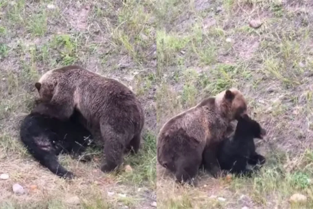 काले भालू ने भूरे भालू को बनाया शिकार