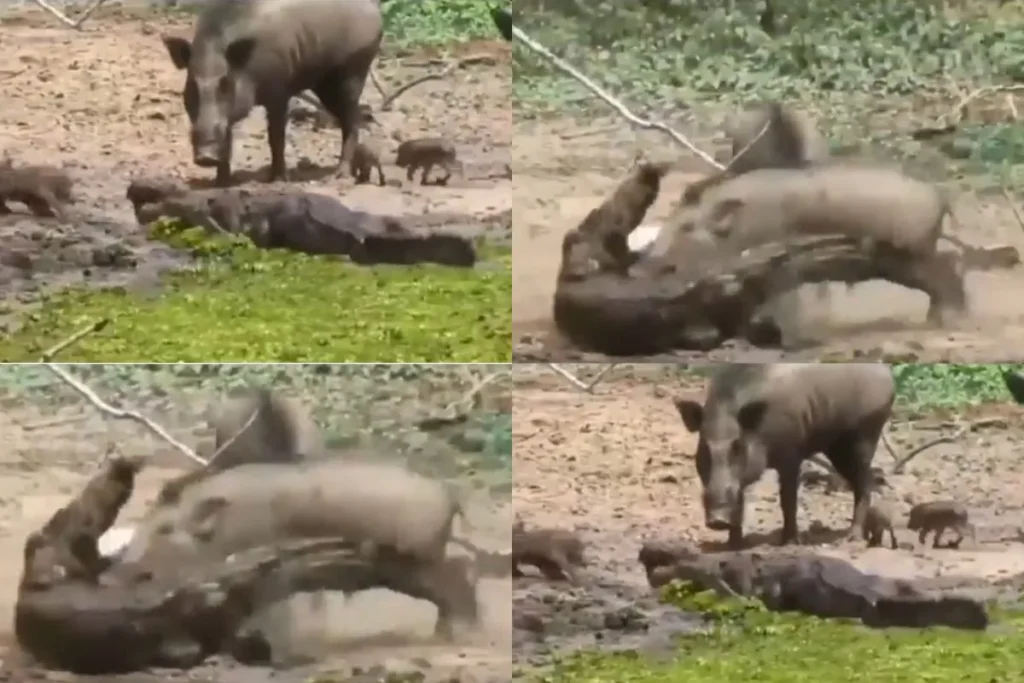 इस घटना के वीडियो को Wildlife Uncensored नाम के एक्स अकाउंट से शेयर किया गया है। वीडियो में देखा जा सकता है कि, नदी किनारे तीन सुअर अपने कई सारे बच्चों के साथ मौजूद हैं। तभी अचानक से वहां पर एक मगरमच्छ आ जाता है। इस मगरमच्छ का साइज छोटा है। इसे देखकर लग रहा है शायद ये अभी वयस्क नहीं हुआ है। ये मगरमच्छ अचानक से सुअर के बच्चे पर हमला कर देता है। तभी बच्चों की जान बचाने के लिए तीनों सुअर इस मगरमच्छ पर हमला कर देते हैं। सुअर अपने मुंह से मगरमच्छ पर हमला करके उसे मार रहे है। सुअरों की ताकत को देख मगरमच्छ को इनके बच्चे को छोड़ना पड़ता है।
