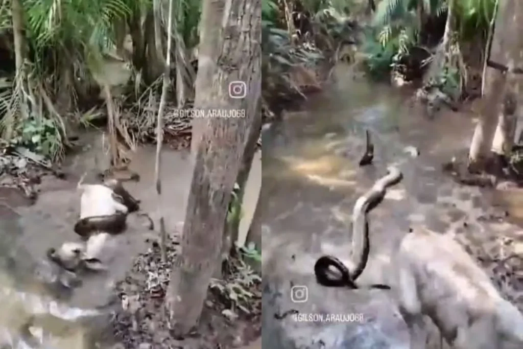 इस वीडियो को Wildlife Uncensored नाम के एक्स अकाउंट से शेयर किया गया है। वीडियो में देखा जा सकता है कि, एक बड़ा सांप एक गाय पर कुंडली मारे हुए है। ये सांप इसे गाय को शिकार बनाना चाहता है। आस-पास काफी पानी और पेड़ है, जिसे देखकर लग रहा है कि, ये वीडियो किसी जंगल का है। इस वीडियो में गाय अपने आप को बचाने की काफी कोशिश कर रही है। तभी वहां पर एक आदमी आता है और वह इस गाय को बचाने के लिए इस सांप पर वार करने लग जाता है। आदमी की तमाम कोशिशों के बाद ये सांप इस गाय को छोड़ देता है और गाय यहां से अपनी जान बचाने में कामयाब हो जाती है। आदमी के द्वार किए गए वार से सांप बुरी तरह से घायल हो कर चित हो जाता है।