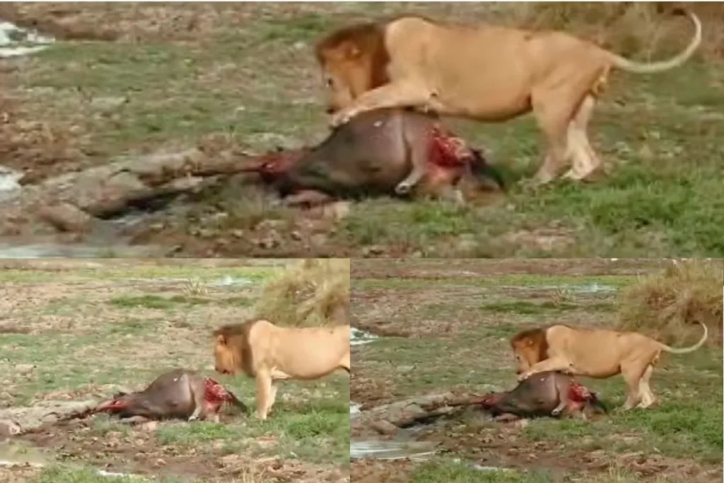 शेर के शिकार पर मगरमच्छ ने लगाई सेंध