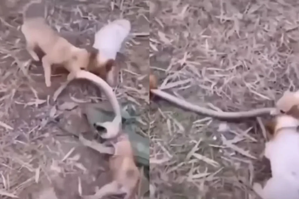 छोटे पिल्लों ने सांप से बचाई साथी की जान