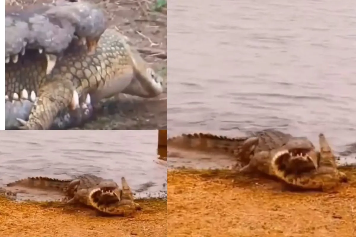 जिंदा मगरमच्छ को चबाता मगरमच्छ हुआ वायरल