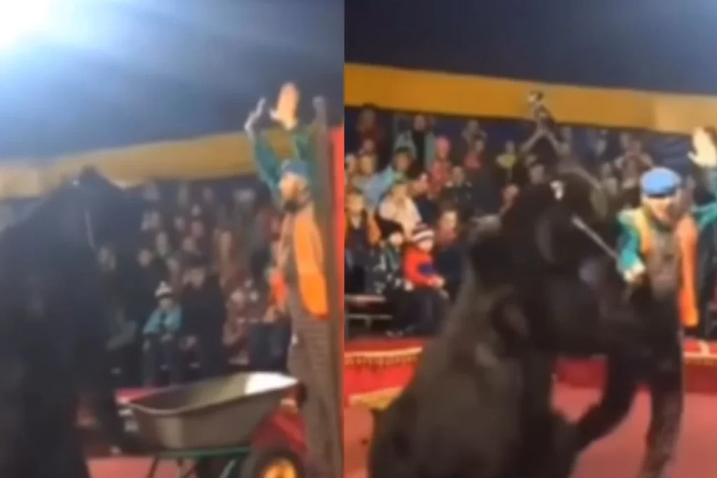 जहां तक वायरल हो रहे इस वीडियो की बात करें तो इसकी शुरुआत होती है एक भालू से जो भीड़ के बीच तमाशा दिखा रहा है। वह अपने टैलेंट और करतब से वहां के लोगों को एंटरटेन करते हुए नजर आ रहा है और इस कलाबाजी को देखने के लिए भीड़ जमा है। वहीं वीडियो में आप देखेंगे कि ट्रेनर भालू की करतब को स्टेज पर दिखाते हुए नजर आ रहा है तभी भालू को गुस्सा आता है और वह कुछ ऐसा कर जाता है जिसकी ट्रेनर ने उम्मीद नहीं की होगी।