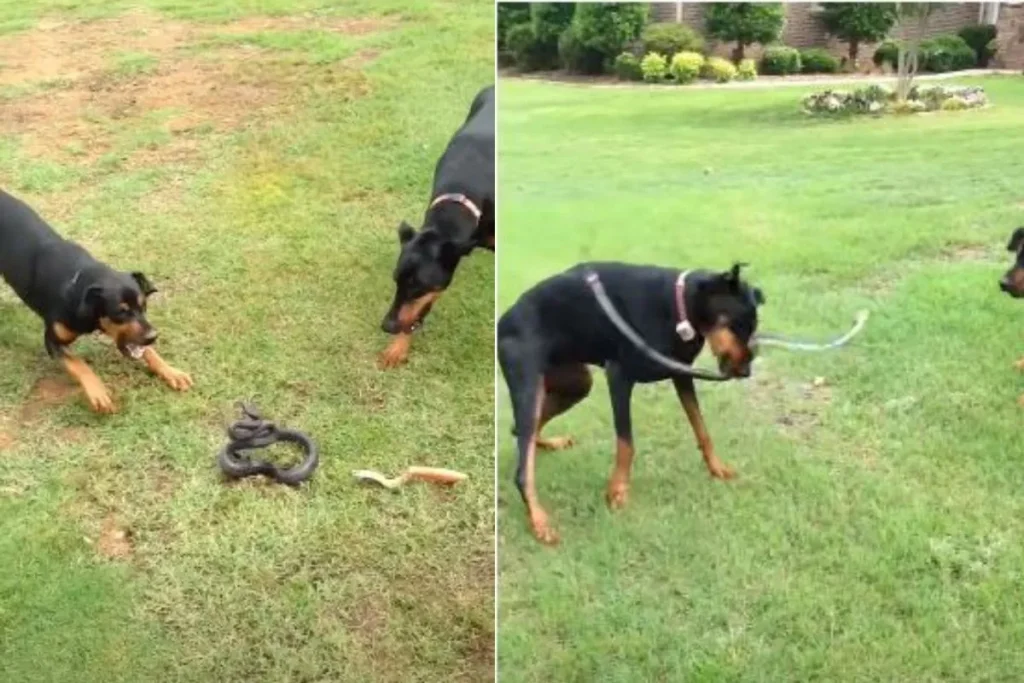 इस भयंकर लड़ाई के वीडियो को सोशल मीडिया प्लेटफॉर्म Youtube पर डाला गया है। ये वीडियो किसी गार्डन का है, जहां पर एक काले रंग का सांप कुंडली मारे बैठा हुआ है, तभी वहां पर दो कुत्ते आ जाते हैं और इस सांप पर बारी-बारी से हमला कर देते हैं। ये दोनों सांप को दांतों से काट रहे हैं। इसके साथ ही उसे हवा में उछाल-उछालकर भी मार रहे हैं। वीडियो में ये दोनों ही कुत्ते इस सांप पर आफत बनकर टूट रहे है। वीडियो के अंत तक ये दोनों कुत्ते सांप को अधमरा कर देते हैं और बुरी तरह से घायल कर देते हैं। सांप इन दोनों कुत्तों के कहर से खुद को चाहकर भी नहीं बचा पा रहा है।