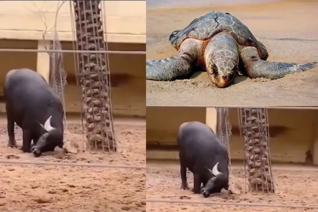 इस हैरतअंगेज वीडियो को Nature is Amazing नाम के एक्स अकाउंट से शेयर किया गया है। वीडियो में देखा जा सकता है कि, एक भैंस दिमाग लगाकर उल्टे पड़े कछुए को अपने सींग की मदद से सीधा कर देती है और उसकी जान बचा लेती है। भैंस के इस कारनामे को सामने खड़े लोग अपने कैमरे में रिकॉर्ड कर रहे होते हैं। वह भैंस के इस कारनामे से काफी खुश हो जाते हैं और चिल्लाने लग जाते हैं।