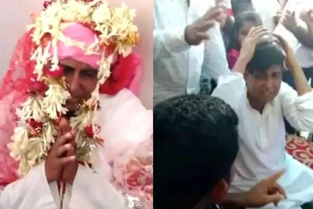 Bride Groom Viral Video: शादी का एक गंजे आदमी पर कुछ इस कदर जुनून सवार हुआ कि, उसने ससुराल वालों को बेवकूफ बनाने के लिए नया तरीका निकाल लिया. वह विग पहनकर निकाह करने पहुंच गया. लेकिन तभी रिश्तेदारों को इसकी खबर लग गई और उन्होंने दूल्हे को पीट दिया. ये ब्राइड ग्रुम वायरल वीडियो बिहार का बताया जा रहा है. ये वीडियो साल 2023 का है लेकिन सोशल मीडिया प्लेटफॉर्म एक्स पर अभी भी खूब देखा जा रहा है. खबरों की मानें तो दूल्हा नकली बाल लगाकर दूसरी शादी करने पहुंचा था.
