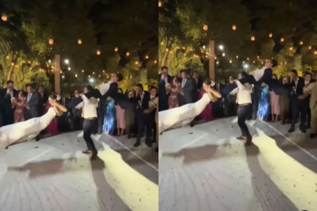 एक आदमी ने अपने कंधे पर दूल्हे को उठाया हुआ है तो वहीं दुल्हन को अपने पैरों से दूल्हे ने थामा हुआ है. इस दौरान यह गोल-गोल घूम रहे है .दिखने में बिल्कुल यह ऐसा लगता है जैसे किसी सर्कस में कोई करतब कर रहा हो लेकिन तभी हादसा हो जाता है. ये तीनों बैलेंस खो देते हैं और जाकर जमीन पर गिर जाते हैं. इस दौरान आस-पास के लोग जो है कि, हंसना शुरू कर देते हैं. दूल्हा-दुल्हन के द्वारा किया गया कारनामा बेहद अतरंगी और अलग है. यही वजह है कि इसे देखने वाले हंस रहे हैं.