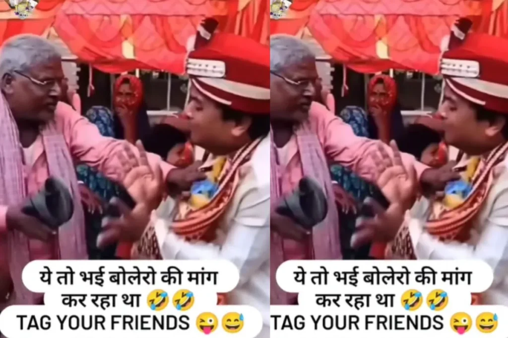 इस वीडियो में एक दूल्हा बोलेरो के डिमांड कर देता है जिसकी, वजह से उसकी चप्पल से पिटाई हो जाती है.इस वीडियो को pahat_brand_05 नाम के इंस्टाग्राम अकाउंट से अपलोड किया गया है.वीडियो में देखा जा सकता है एक बूढ़ा आदमी दूल्हे के कपड़े पहने हुए एक लड़के की जमकर पिटाई कर रहा है और वीडियो के कैप्शन में लिखा आ रहा है.”यह तो भाई बोलेरो की मांग कर रहा था”. आदमी के हाथ में चप्पल और लगातार इस दूल्हे पर चप्पलों से वार कर रहा है.